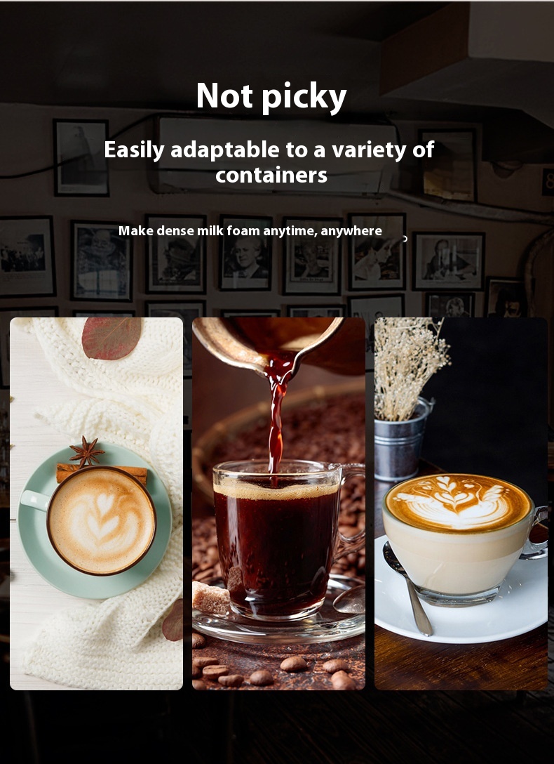Experience café-style foam in seconds—without ever leaving your kitchen. This rechargeable milk frother puts the power of creamy, velvety foam right in your hands, perfect for elevating all your coffee moments—from morning lattes to evening hot chocolates. Compact yet reliable, it’s whisper-quiet and cordless, so cleanup is a breeze. Plug it in, whisk your milk, and enjoy beautiful foam that makes every sip feel gourmet. Small enough to live in your drawer, strong enough to impress your taste buds—this is your new go-to for turning ordinary drinks into special ones
